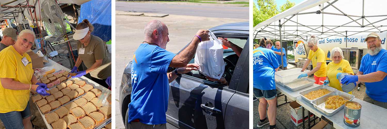 - OR make a one-time gift of $420 or moreYour gift will also help provide 3 meals through Eight Days of Hope’s Mass Feeding Ministry. These meals serve communities impacted by natural disasters while sharing the love of Jesus in a tangible way.